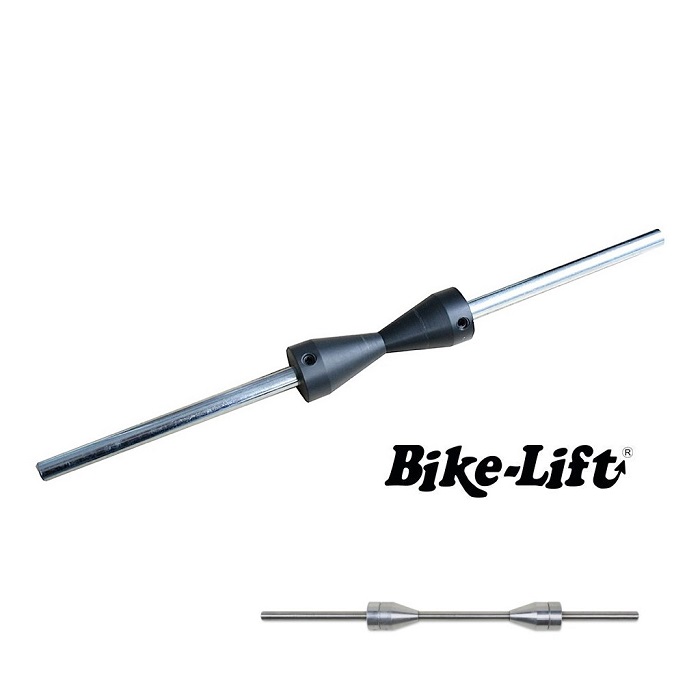 Este conjunto de eje y conos de Bike-Lift es el equipo base para cualquier taller de neumáticos. Su medida de Ø12mm es el estándar para la gran mayoría de bujes delanteros y traseros de motocicleta. Permite un montaje rápido y un centrado milimétrico en la bancada de equilibrado.